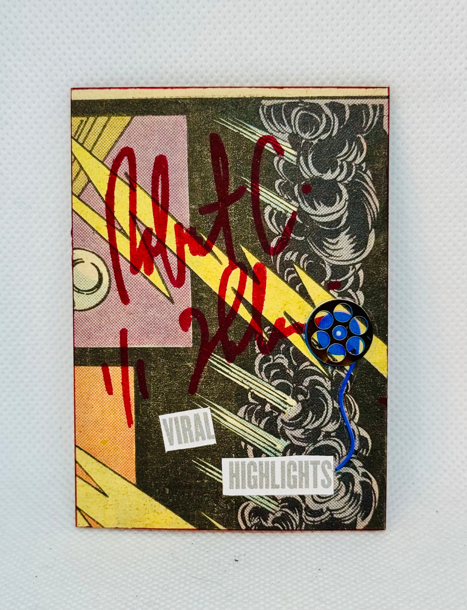 This is a custom made art card and the only one of this kind in existence (1/1). Standard trading card sized (2.5”x3.5”), mixed media with acrylic paints. The buyer receives the card securely packaged in a magnetic hard plastic “one touch” case for easy display and secure storage along with a digital certificate of authenticity (upon buyer request—please supply best email). This art product is signed by the artist (Robert C. Huckins). Outstanding for any fan, card or art collector! |